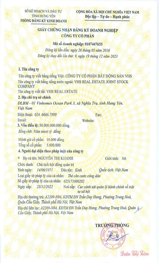 - Người đại diện: NGUYỄN THỊ KHANH